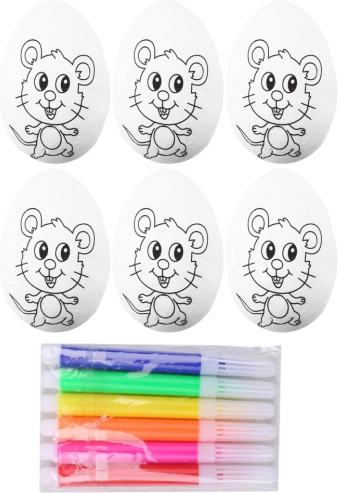 Styropor påskeæg til at male med tuscher, musemotiv, 6 stk.