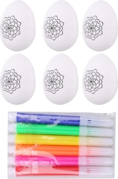 Dette sjove sæt giver alt, hvad børn behøver for at lave originale påskeæg. Æggene har en glat, hvid overflade, klar til at male, optegne og færdiggøre. Takket være de medfølgende tuscher i seks farver kan børn straks skabe og udvikle deres kreativitet.