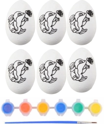 Skab magiske påskedekorationer med et sæt polystyrenæg med kaninmønster. Pakken indeholder 6 æg, en pensel og et sæt farver i grundnuancer. Den glatte overflade er klar til maling, udvikler finmotorik og støtter børns kreativitet – ideel til hjemmet, skole og daginstitution.