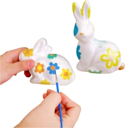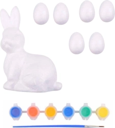 - 6 polystyrenæg, 1 kaninfigur, 6 farver, 1 pensel