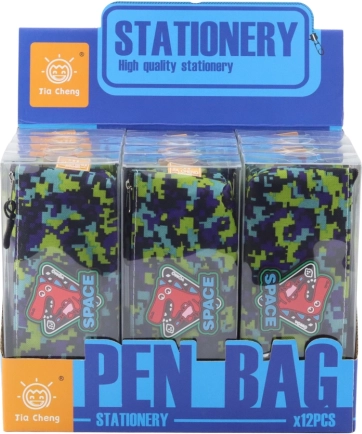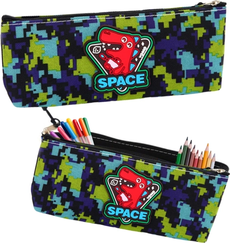 Kosmetiktaske med dinosaur- og pixelmønster er ideel til børn, der elsker rummet og dinosaurer. Denne taske tilbyder et unikt design med livlige farver i kombinationen blå, grøn og sort og er ideel til at organisere dine skriveredskaber.
