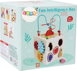Montessori sanse- og læringsterning i træ tilbyder fem interaktive sider til leg og læring. Den understøtter kreativitet, hånd-øje-koordination og udvikling af børns motoriske færdigheder.