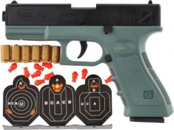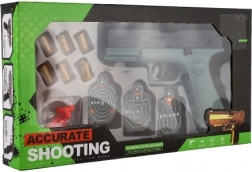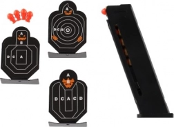 I sættet finder du en pistol, kugler og mål, som er alt hvad du behøver til en spændende skydetræning.