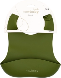 Silikone hagesmæk New Baby i elegant olivengrøn kombinerer stil og funktionalitet til daglig brug. Fremstillet af sikker BPA-fri materiale.
