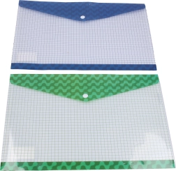 En praktisk og stilfuld mappe med trykknap i størrelsen 36x26 cm er ideel til organisering af dine dokumenter. Den fås i fire attraktive farver: blå, lyserød, orange og grøn.
