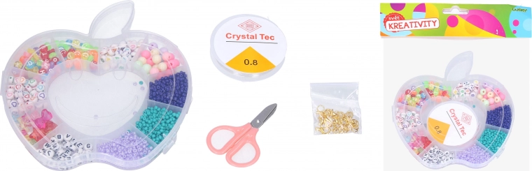 Perlesæt Æble tilbyder alt, hvad du behøver for at lave dine egne halskæder og armbånd. Sættet er perfekt til kreativt håndarbejde og indeholder perler, snor, saks og låse.