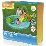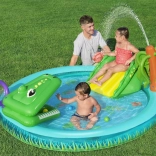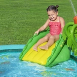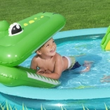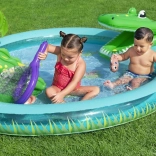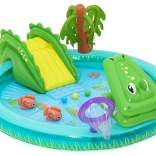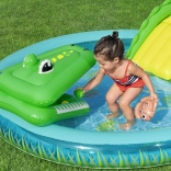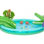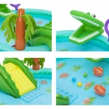 Giv børnene en sommer fuld af latter med det oppustelige vandlegeområde i krokodillestil fra BESTWAY. Sættet kombinerer en rutsjebane med blød landingszone, en sprinkler formet som en palme, der kan tilsluttes haveslangen, og sjove aktiviteter som at kaste bolde i krokodillens mund eller fange fisk. Det rummelige bassin med kapacitet på 210 l er ideelt til børn fra 2 år og tilbyder sikker vandleg i haven.