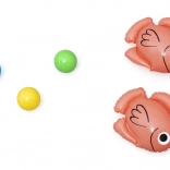 - 1 × bassin, 1 × aftageligt fiskenet, 2 × Puffy Pal-fisk, 3 × bold, 1 × reparationslap