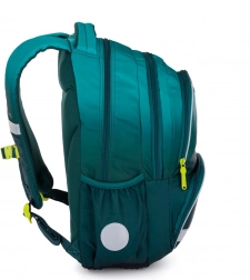 Skolerygsækken Oxybag OXY NEXT Stickers i moderne turkis med kontrastlynlåse og et stilfuldt mærke med en smilende emoji begejstrer både børn og forældre. Den er designet til behagelig hverdagsbrug – har anatomisk formet ryg, polstrede skulderstropper og brystrem for stabil pasform på ryggen.