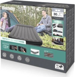 Den oppustelige seng Bestway TRITECH er en pålidelig makker til overnatning derhjemme og på farten. Den indvendige TRITECH‑konstruktion er forstærket for langvarig formstabilitet og er mere modstandsdygtig over for udvidelse end almindelig PVC. Den behagelige, ruskindsagtige overflade øger komforten og forhindrer, at sengetøjet glider.