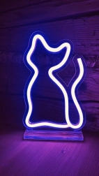 LED-neonlampen kat tilfører rummet en behagelig stemningsglød og et moderne design. Den transparente fod og de rene konturer skaber en elegant accent, der passer ind i enhver indretning – fra børneværelse til kontor eller café.