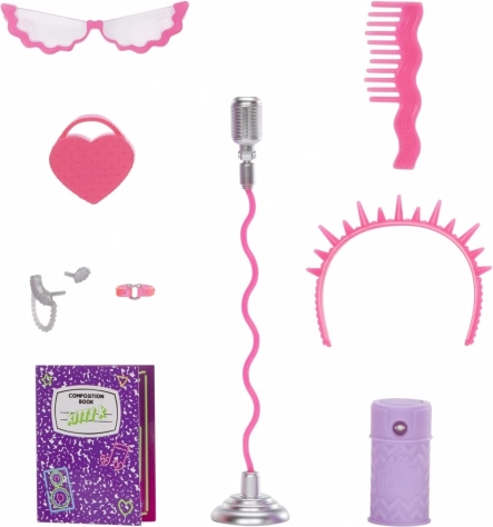 Sættet byder på masser af sjov til kreativ leg, styling og optrædener på hjemmets “scene”. Dukken er leddet for naturlige poser, og sammen med tilbehør som mikrofon, guitar og hjerteformede briller inspirerer den til endeløse historier.