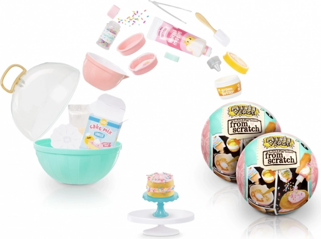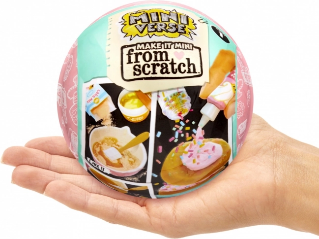 MINI VERSE: Make It Mini From Scratch er en sjov DIY-kollektion, hvor du af miniatyringredienser og -værktøjer skaber realistiske mini-desserter og salte retter. Hver kugleformet pakke gemmer på en overraskelse – ingredienskombinationen er altid anderledes, så hver åbning giver et nyt kreativt projekt.