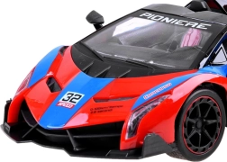 Den sportslige fjernstyrede bil i en attraktiv rød-blå-sort kombination er et ideelt valg for både små og større chauffører. Den aerodynamiske plastkarrosseri, gummidæk og mulighed for justering af sporing sikrer stabil kørsel og langvarig underholdning.