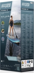 Den alsidige oppustelige paddleboard HYDRO-FORCE OCEANA 2-i-1 er ideel til rekreativ padling og længere ture. Takket være den stive drop-stitch-konstruktion er den let, rigid og stabil, mens den nemt transporteres i en rygsæk. På et øjeblik kan du omdanne den til en kajak med sæde og ryglæn. Den har også en skridsikker ståflade, aftagelige finner, sikkerheds-leash og mange muligheder for opbevaring af udstyr.
