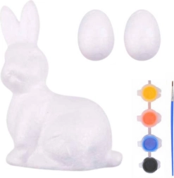 Dette sæt til maling af polystyren dekorationer tilbyder en fantastisk mulighed for både børn og voksne til at udvikle kreativitet og manuelle færdigheder. Indeholder en polystyren figur og to polystyren æg, som nemt og præcist kan males med de medfølgende farver i intense fire farver og pensel.