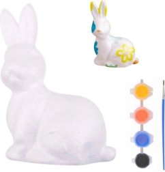 I sættet finder du én polystyrenhare med målene 14 x 9,5 cm. Sættet indeholder også fire farver i intense nuancer samt en pensel, som gør det nemt og præcist at male.