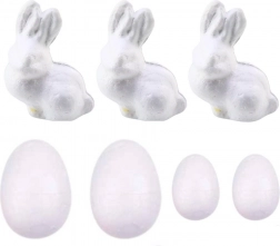 Nyd kreativ påskeskabning med sæt til maling af polystyrenpynt. Indeholder alt, hvad du behøver for at skabe unikke dekorationer: tre kaniner, fire æg, et sæt farver og en pensel.