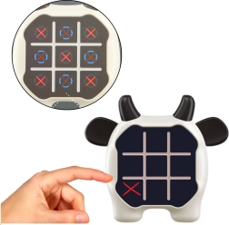 Produktegenskaber: - Interaktive lys- og lydeffekter: Hver spilomgang bliver mere spændende og fængende. - Sødt ko-inspireret design: Ideelt til at fange børns opmærksomhed. - Let og kompakt konstruktion: Nem at tage med i skole, på rejser, ferier eller ved sammenkomster med venner. - Tre forskellige spiltilstande: - Kryds og bolle: Traditionelt strategispil. - To-spiller: Perfekt til to spillere og styrker sociale færdigheder. - Hukommelse: Træner hukommelse og koncentration.