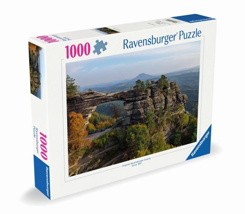 Oplev magien i Bøhmiske Schweiz med et kvalitetspuslespil fra RAVENSBURGER med 1000 brikker. Takket være den præcise udskæring og det robuste materiale passer brikkerne perfekt sammen, så du kan nyde en flydende læggeoplevelse uden frustration og med det betagende motiv af Pravčická brána.