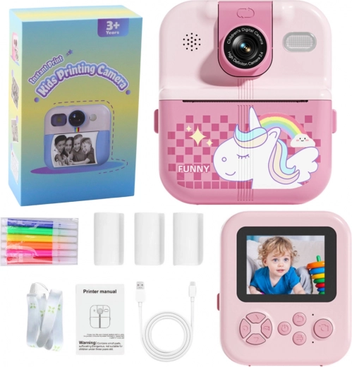 Med denne enhed kan børn tage billeder, optage videoer og øjeblikkeligt printe yndlingsfotos uden behov for blæk. Pakken indeholder 3 gratis ruller termisk papir, hvilket muliggør øjeblikkelig brug. Enheden er udstyret med en 2,4-tommers IPS HD skærm, der sikrer klare billeder og komfortabel visning af fotos og videoer.