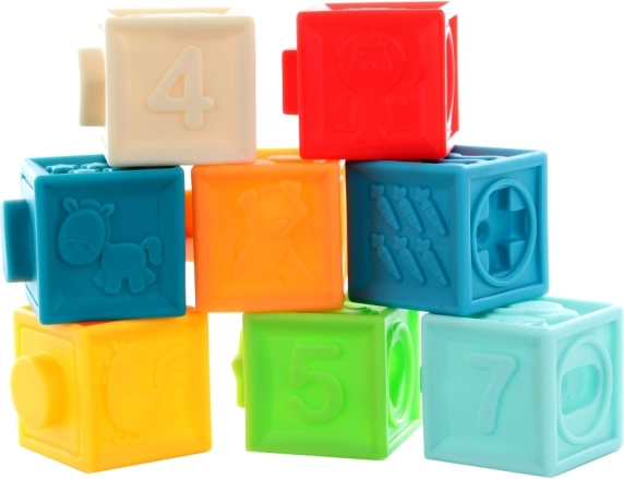 Sættet indeholder 20 forskellige stykker legetøj, der udvikler gribefærdigheder samt visuelle og taktile evner hos børn fra 6 måneder.