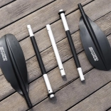 Âret er udstyret med et komfortabelt greb af termokrympelig polyolefin, som sikrer et fast greb og minimerer risikoen for at glide, selv under lang tids brug. Takket være de tre blokeringspositioner muliggør det let justering af vinklen under pagajtakning, hvilket gør åren velegnet til både højrehåndede og venstrehåndede.