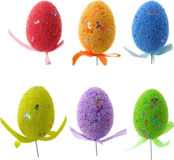 Takket være den elastiske tråd kan æggene nemt placeres i blomsterarrangementer, potter, fletkurve eller påskekranse. Det lette styropor-materiale holder formen og er praktisk til gentagen brug. Sættet indeholder 6 æg i forskellige farver, så du hurtigt kan skabe en harmonisk og iøjnefaldende dekoration.