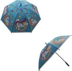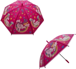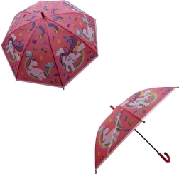Den søde børneparaply med enhjørningemotiv beskytter dine børn mod regn og glæder med et legende design. Takket være den automatiske mekanisme åbner den hurtigt, den robuste stålkonstruktion giver stabilitet, og plastikhåndtaget sikrer et behageligt greb selv for små hænder.