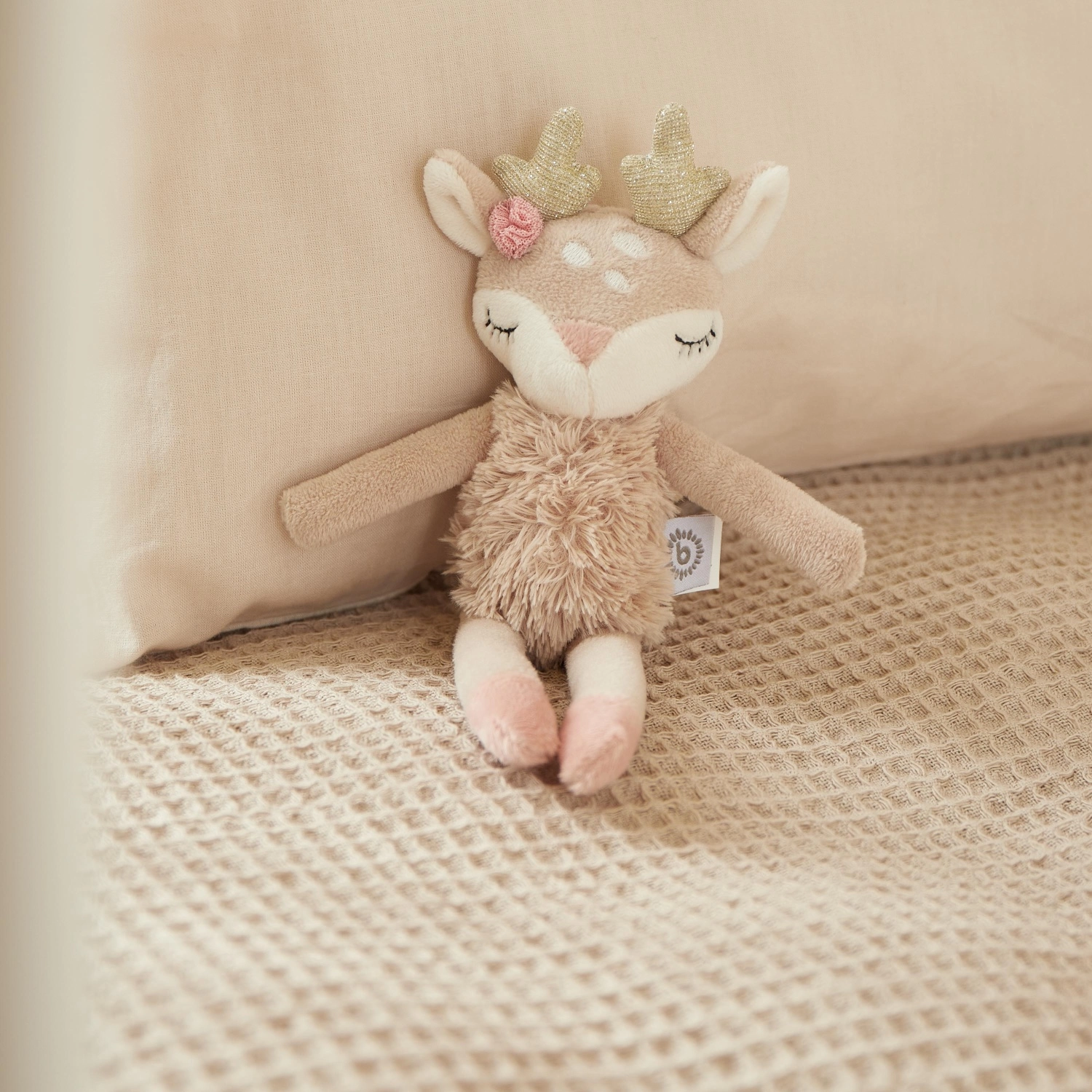 Tekstillegetøjet Hjorten Ella er den ideelle ledsager til din baby. Dette søde legetøj med en blød rangle indeni byder ikke kun på underholdning, men også rolige stunder før sengetid.