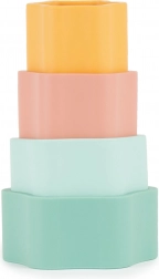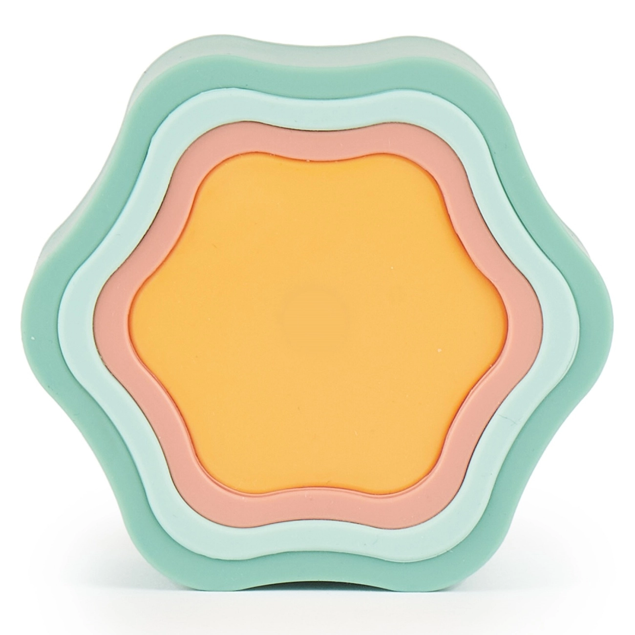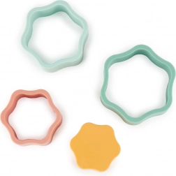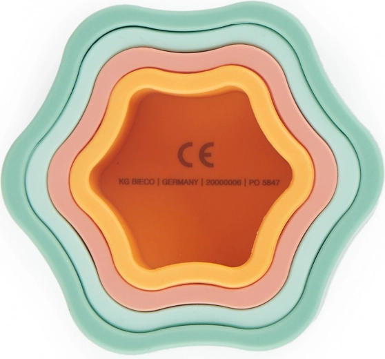 Dette farverige stablesæt i blomsterform giver børn sjov læring gennem leg. Delene passer glidende ind i hinanden, så børn øver tålmodighed, rumlig forståelse og koordinationsevner. Takket være den bløde, men robuste silikone er håndteringen behagelig og sikker.