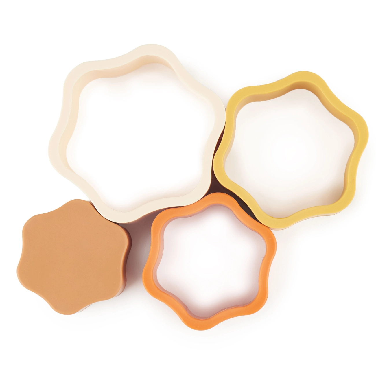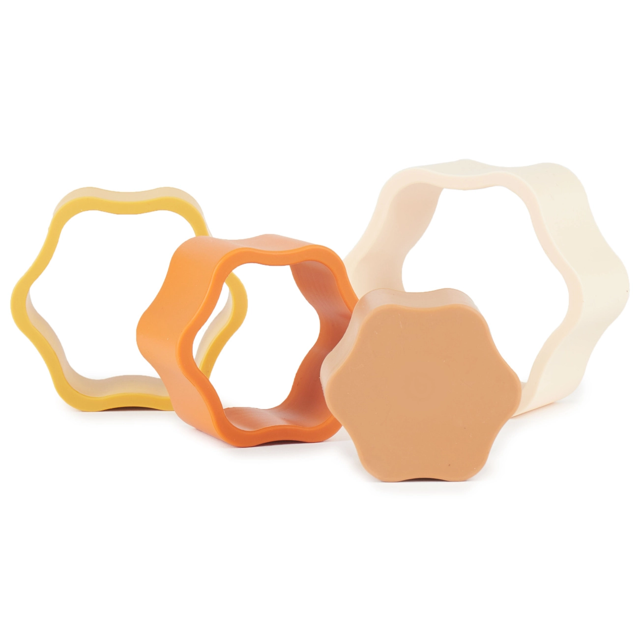 Dette 4-delte stabelsæt i blomsterform er lavet af 100% fødevaregodkendt silikone, som er blød at røre ved, sikker for børn og samtidig meget holdbar. At stable og sortere de enkelte dele udvikler hånd-øje-koordination, finmotorik og logisk tænkning.