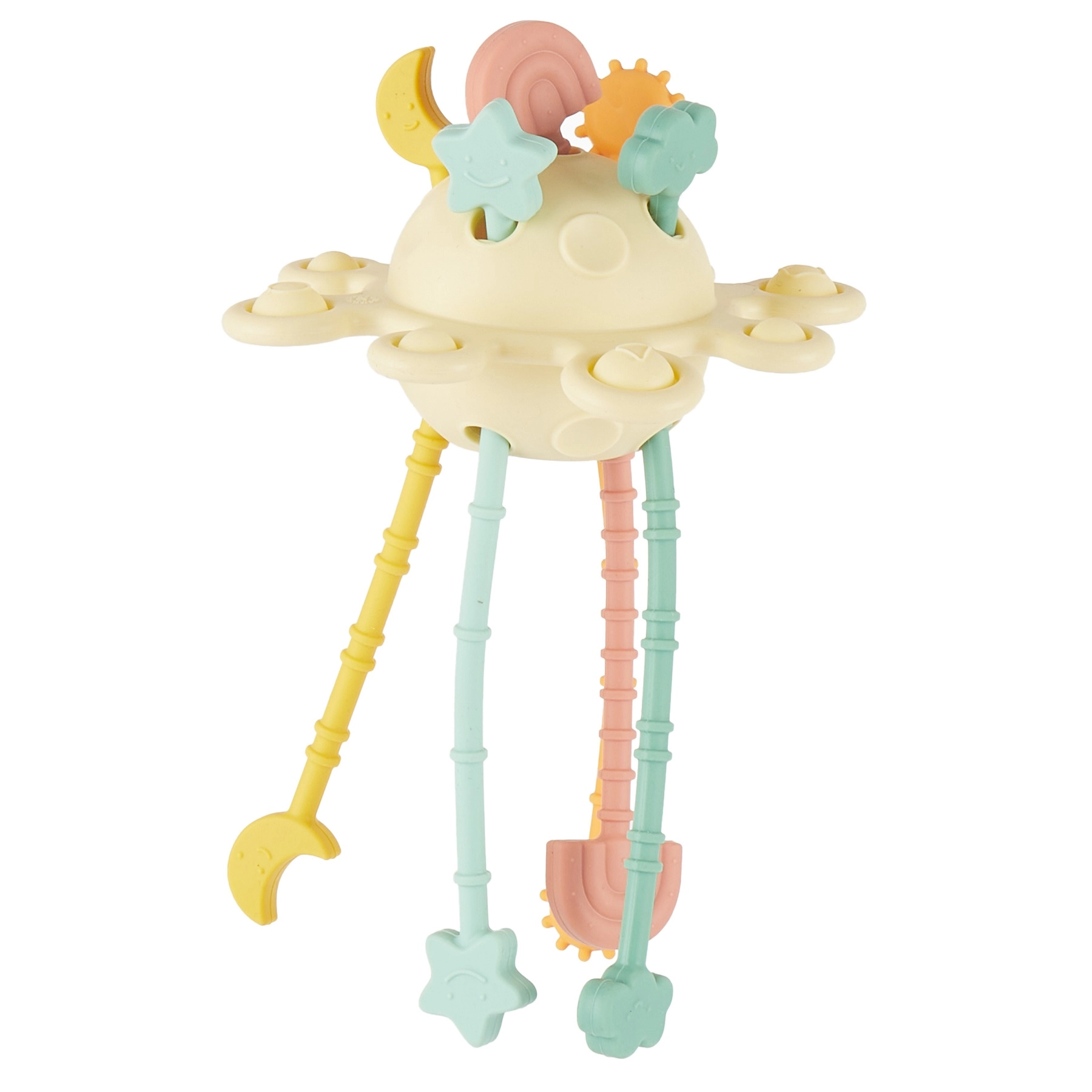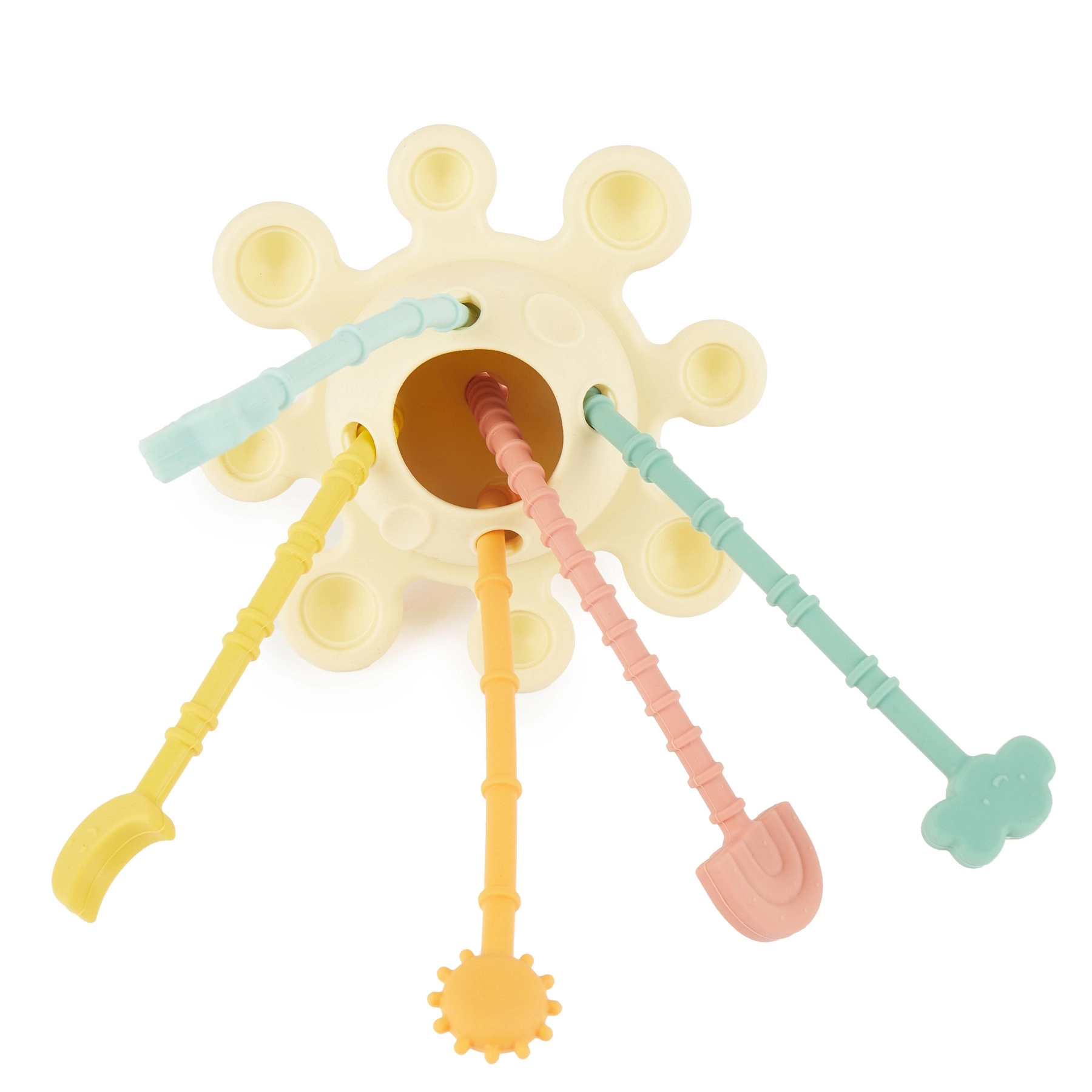 Denne silikone motoriklegetøj er designet efter Montessori-principper og hjælper børn med naturligt at udvikle færdigheder gennem leg. De holdbare træksnore kan trækkes frem og tilbage, trykelementer styrker finger musklerne, og de mange teksturer stimulerer både berøring og nysgerrighed.