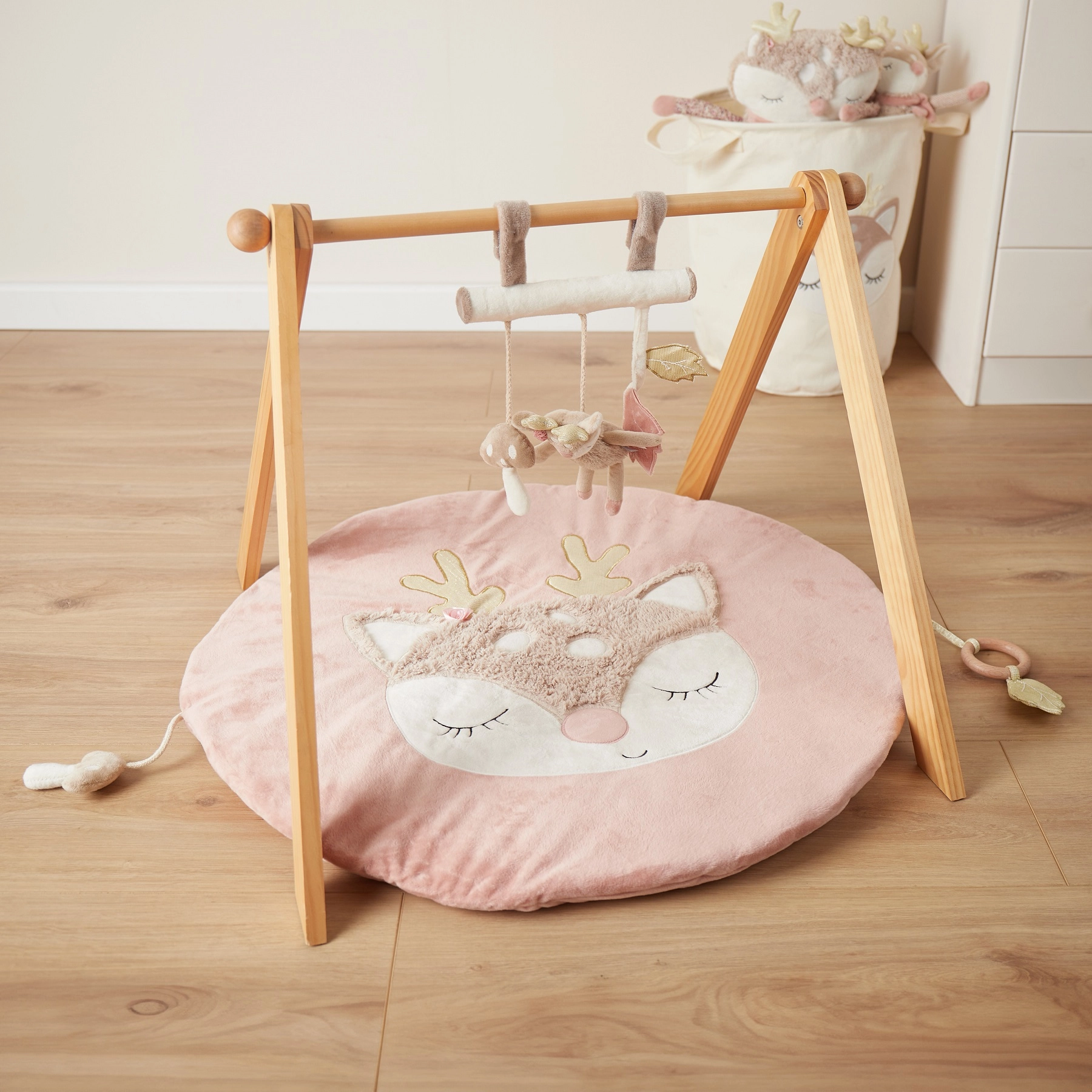 Gennemtænkte detaljer understøtter udviklingen af finmotorik og sanser – forskellige teksturer indbyder til berøring, knitrende blade og raslende rådyr stimulerer hørelsen, mens svampen med blid spinden/vibration fanger og beroliger babyen. Nem vedligeholdelse og høj kvalitet sikrer lang holdbarhed.