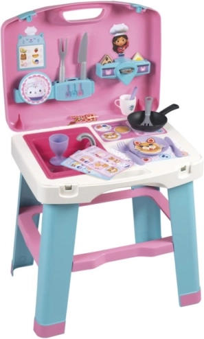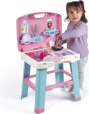 Gabby’s Dollhouse køkken er det ideelle valg til små kokke. Dette bærbare sæt gør det nemt at opbevare og transportere uden behov for værktøj. Det muliggør interaktiv leg og understøtter udvikling af sociale færdigheder hos børn.