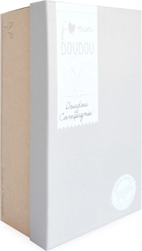 Bamsen er pakket i en smuk gaveæske, som er egnet til opbevaring af minder som fotos eller andre mindesmærker fra barnets fødsel. Takket være den genanvendelige æske er den også en vidunderlig gave til enhver lejlighed.
