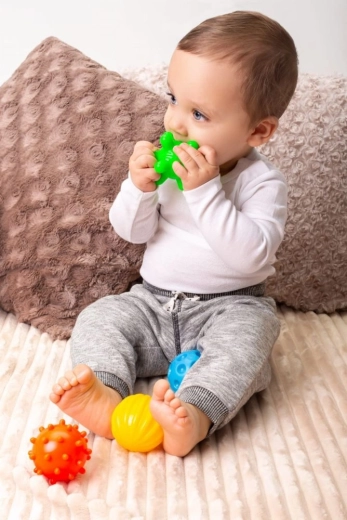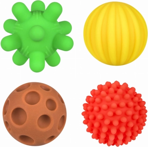 Hver bold har sin egen unikke tekstur og farve, hvilket giver forskellige sensoriske oplevelser og understøtter udviklingen af taktile og visuelle færdigheder.