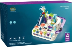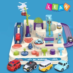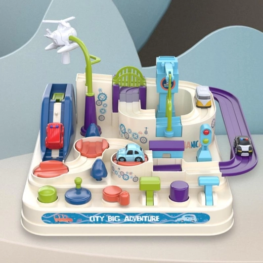 Sættet indeholder en farverig forhindringsbane med omhyggeligt design, som sikrer maksimal sjov og stimulerer barnets fantasi. Med fire små biler kan barnet overvinde forskellige forhindringer som rutsjebaner og broer. Brug af de særlige knapper og drejeknapper placeret på basen bidrager til at udvikle logisk tænkning og finmotorik.