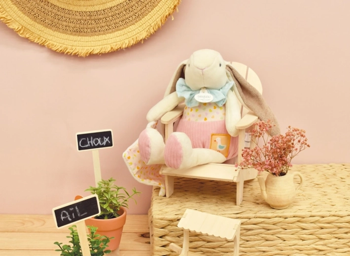 Gavesæt Kaninen Ciboulette er det ideelle valg til børn fra fødslen. Sættet indeholder en sød kanin med lange ører og et blødt tæppe, der giver ro og underholdning.