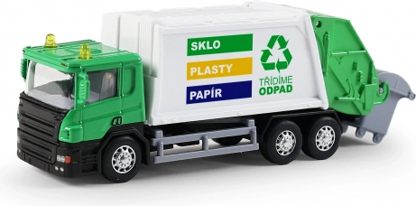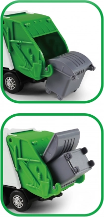 Børn vil elske denne præcist udførte skraldebil, som er ideel til realistisk leg. Bilen er forsynet med klapbare døre på ladets bagende for nem aflæsning af affald og leveres med en praktisk container, der kan åbnes. Takket være pull-back kører bilen let og gør legen endnu sjovere.