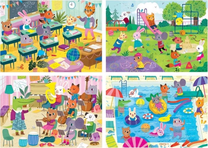 Educa puslespil En dag i skolen 4-i-1 (20–80 brikker)