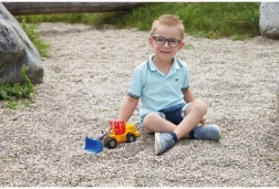 Lastning og tipning er let og intuitivt – børn styrer skovlen med armens bevægelse uden batterier.