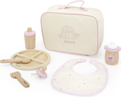Træsæt til at fodre dukke i lille taske med flaske og hagesmæk PolarB