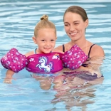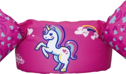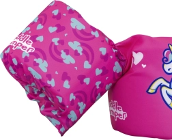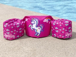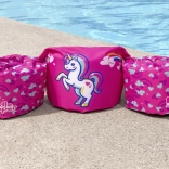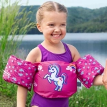 Det lyserøde enhjørninge-motiv med hjerter og regnbue motiverer børn til leg i vandet og øger deres selvtillid, når de lærer at svømme.