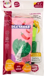 Hver side viser en grøntsag med engelsk betegnelse – ideelt til den første introduktion til et fremmedsprog og ordforråd.