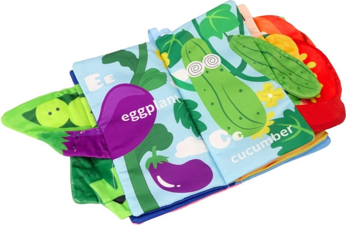Blød stofbog til babyer – grøntsager, knitre- og pivelyde