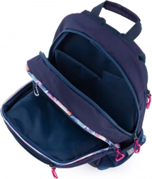 Studenter-rygsækken OXY Sport Blomster Blå er et perfekt valg til både skole og fritid. Den ergonomisk formede ryg og de polstrede skulderstropper sikrer komfort selv ved tungere belastning. Rygsækken har to hovedrum med robuste lynlåse, en lille forreste lomme til småting og en forstærket lomme til laptop. Skjulte lommer og en karabinhage til nøgler øger funktionaliteten.