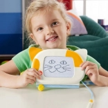 Lad børnene slippe kreativiteten løs med denne magnetiske tegnetavle fra Fisher-Price, inspireret af søde dyr. Den katteformede tavle er udstyret med en stylus fastgjort med snor, som er let for små hænder at holde, og lader børn skabe flotte værker uden rod. Når tegningen er færdig, skal man blot skubbe på håndtaget formet som et ben for nemt at slette skærmen og starte en ny skabelse!