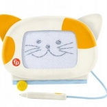 Tegnetavle i katteform med medfølgende stylus fastgjort med snor, gør det muligt at tegne igen og igen uden rod.