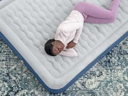 BESTWAYs oppustelige seng er fremstillet af det holdbare Tough Guard Fortech-materiale, som kombinerer PVC’s elasticitet med stoffets styrke. Den bløde flokkerede overflade er behagelig at røre ved, skrider ikke og øger komforten. Den stabile Wave Beam-konstruktion fordeler vægten jævnt og modvirker at man synker ned.